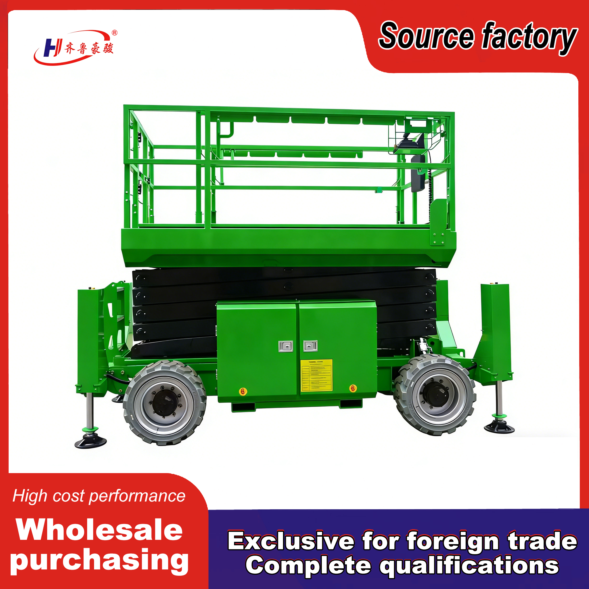 Off-road makaslı platform, sağlam ve aşınmaya dayanıklı şasi, güçlü kayma önleyici lastik tutuşu ile ağır hizmet tipi bir off-road tasarımını benimser ve kum, çakıl ve çamur gibi karmaşık yol koşullarıyla baş edebilir. Stabil ve güvenli bir şekilde çalışır. Ağır iş arazi kaldırması, ağır iş performansını artırır ve gövde, ağır aletlere ve operatörlere dayanabilecek yüksek mukavemetli malzemelerden yapılmıştır. Uzun süreli dış mekan operasyonlarında kolay kolay zarar görmez ve bakımı kolaydır.